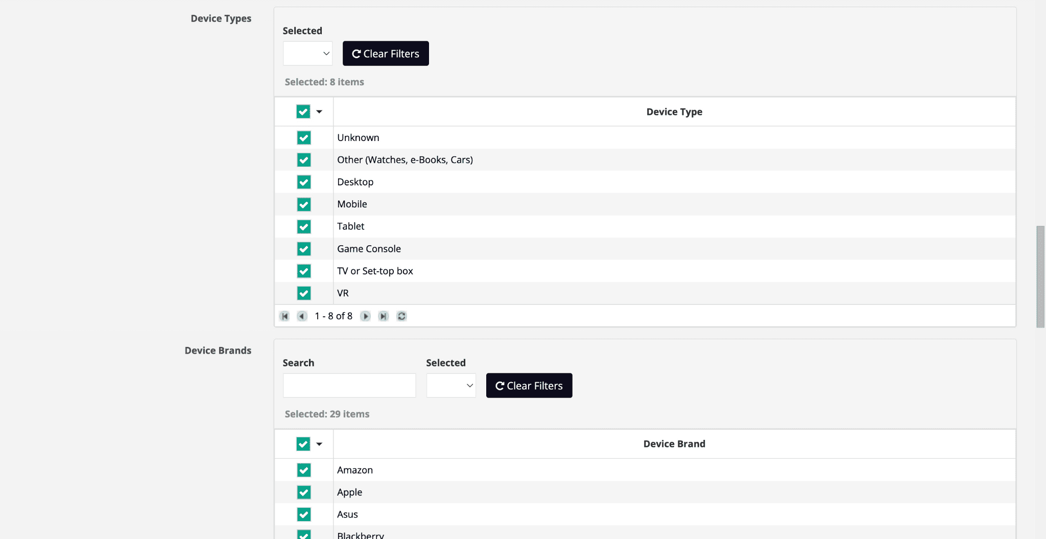 Also, choose the operating systems and device types.