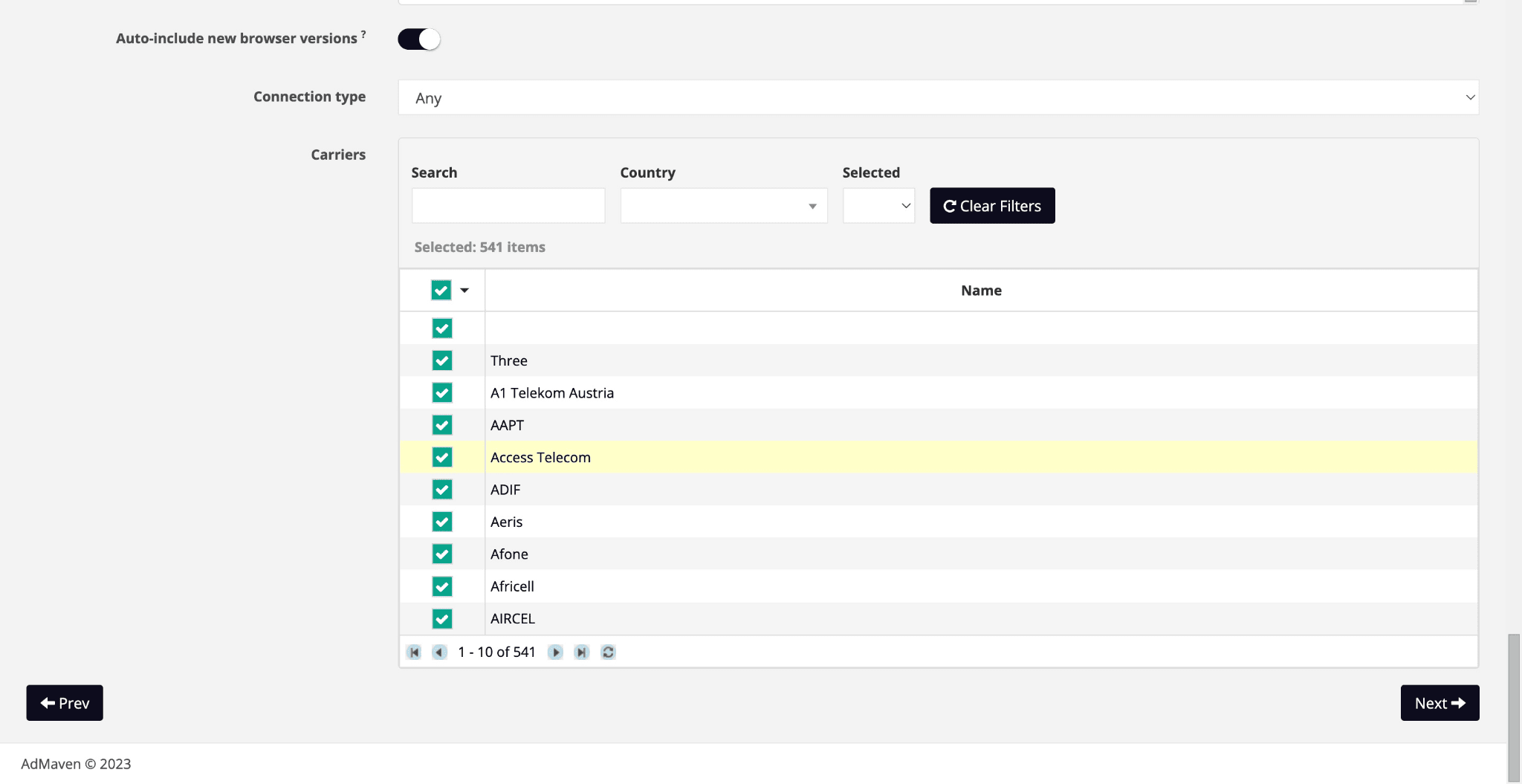 You can even choose a connection type and specific carrier. This is helpful when you promote mVAS offers on a CPA basis.