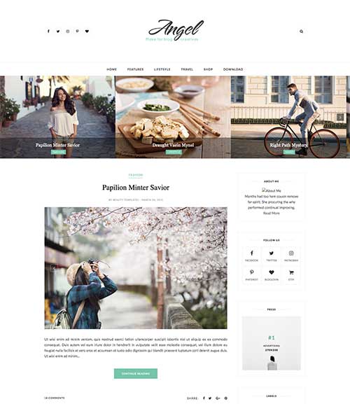 This is an excellent template for articles about Home and decor. Angel is adapted from WordPress with 2 columns, rounded corners, neutral colors, minimalist, etc. This ad-ready template with awesome typography can be integrated with Instagram too.