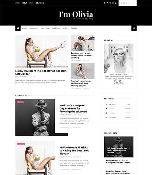 Olivia Dark Blogger Template has many attractive styles of homepages that plays the biggest role in creating a great image in the visitor’s mind. It is designed simply but gives a modern look to your blog.
