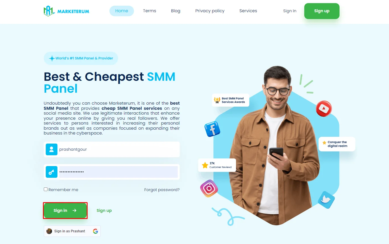 Using Marketerum is a straightforward process designed to help you quickly boost your social media presence. Here’s a step-by-step guide to signing up and purchasing services on the platform: